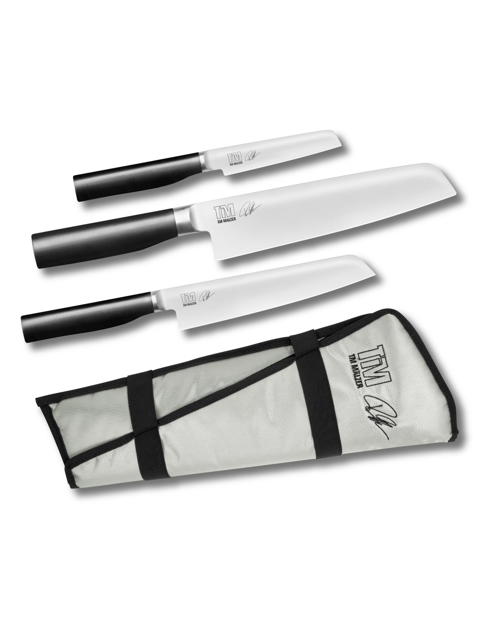 Deze set, bestaande uit drie hoogwaardige messen uit de Kamagata serie en een geborduurde messentas met Tim Mälzer signatuur, is absoluut allround voor iedere keuken.